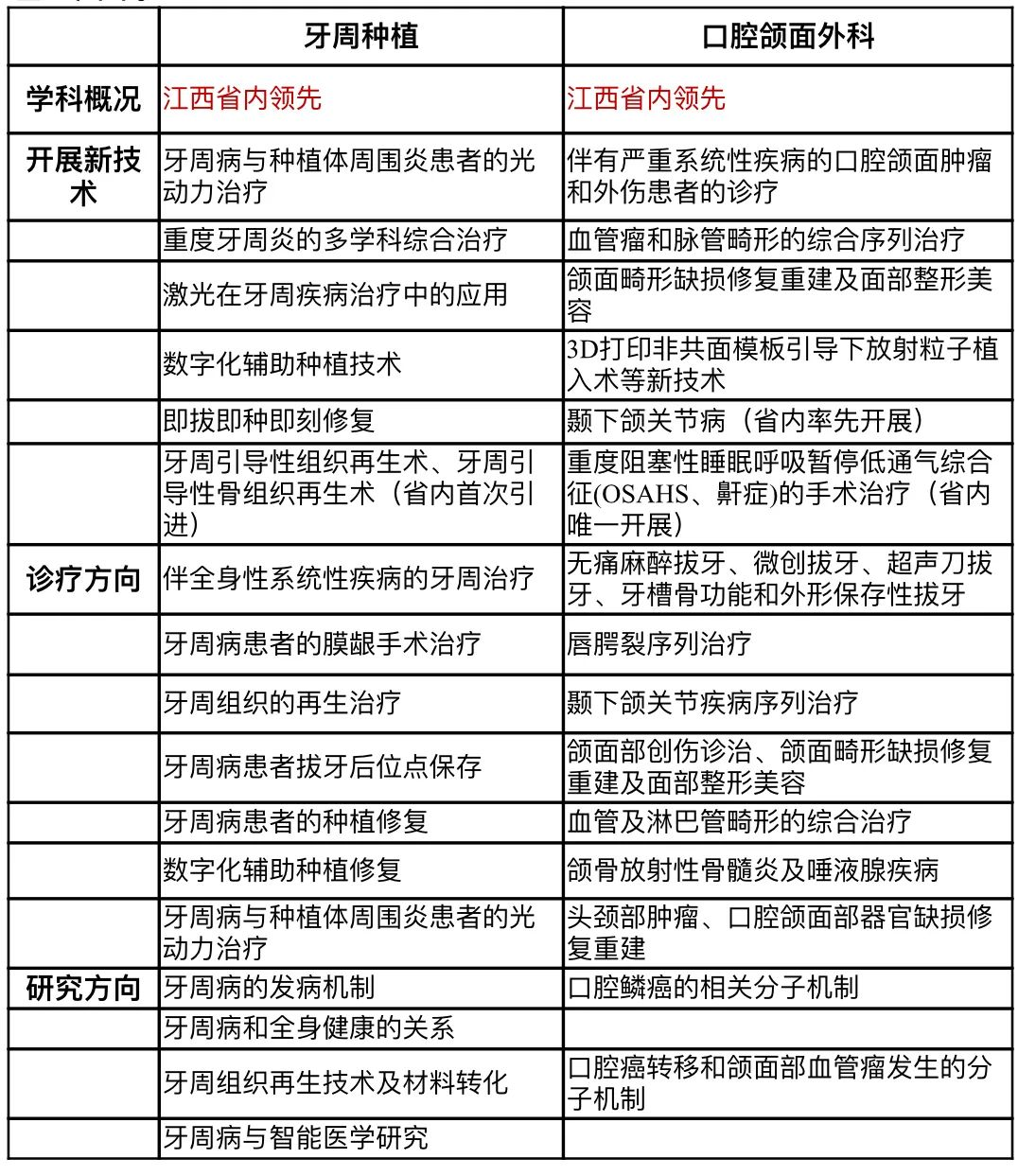 多年來(lái),南昌大學(xué)第二附屬醫(yī)院口腔醫(yī)學(xué)診療中心持續(xù)開(kāi)展各類(lèi)新技術(shù),填補(bǔ)了省內(nèi)空白二十余項(xiàng):1959年在省內(nèi)首先開(kāi)展了下頜骨切除的修復(fù)術(shù),1981年首先開(kāi)展了血管髂骨修復(fù)下頜骨術(shù),90年代后期開(kāi)展了帶蒂皮瓣及血管化游離皮瓣顯微外科的重建修復(fù),同時(shí)期在省內(nèi)開(kāi)展了牙病的序列調(diào)節(jié)及牙周引導(dǎo)組織再生術(shù)等。