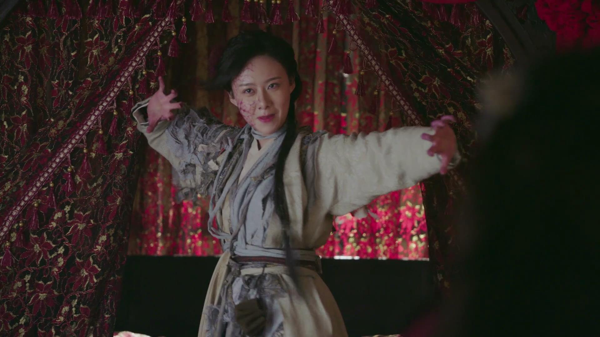 成年殷離出場,如原著一般的逐漸變丑確實很難做到,19版殷離也是在臉上做了傷痕一樣的東西來強行變丑。出場大抵上與原著所寫差不多。