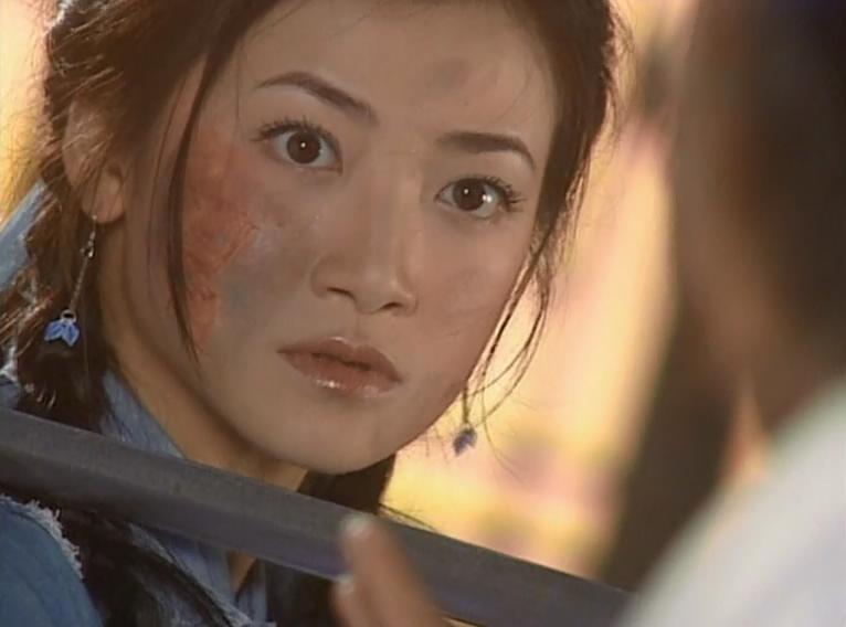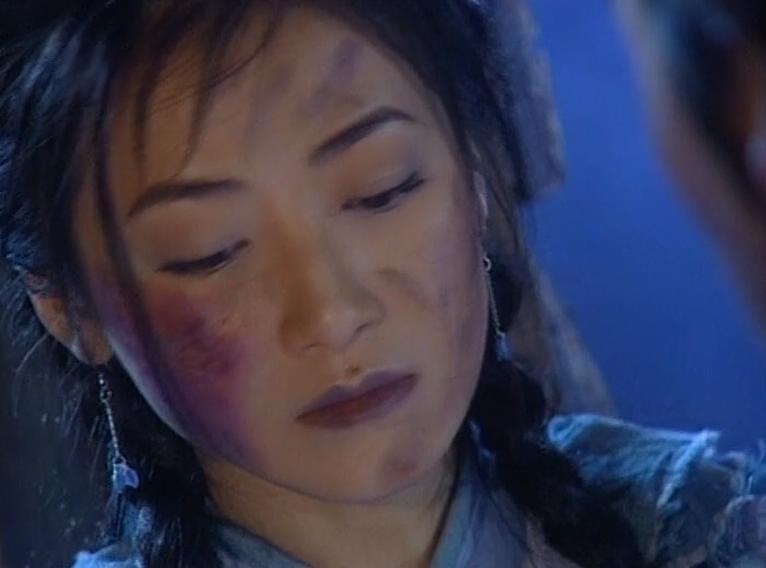 殷離并未換演員(因為演員年齡本來就已經(jīng)足夠演成年部分了),臉上涂了些東西來變丑,這版她是找自己的蜘蛛找到了無忌落入的農(nóng)舍。