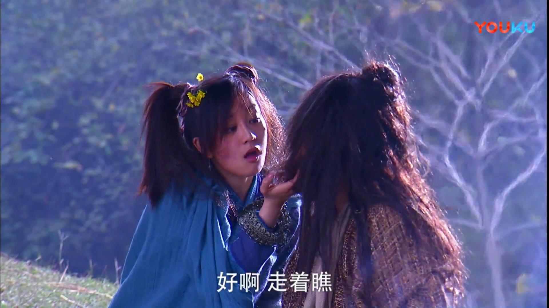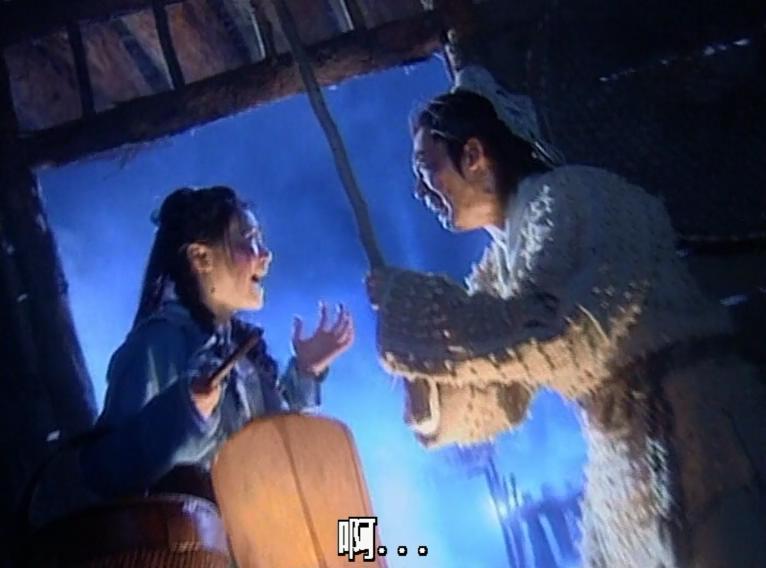 張檬(當時叫張萌,與另一位女演員同名)的殷離蹦蹦跳跳的,活潑的像個多動癥兒童,說話和行動像個傻姑,不過倒也挺可愛,殷離身上自帶的邪性被表現(xiàn)了出來,就手下留情不截動圖了。