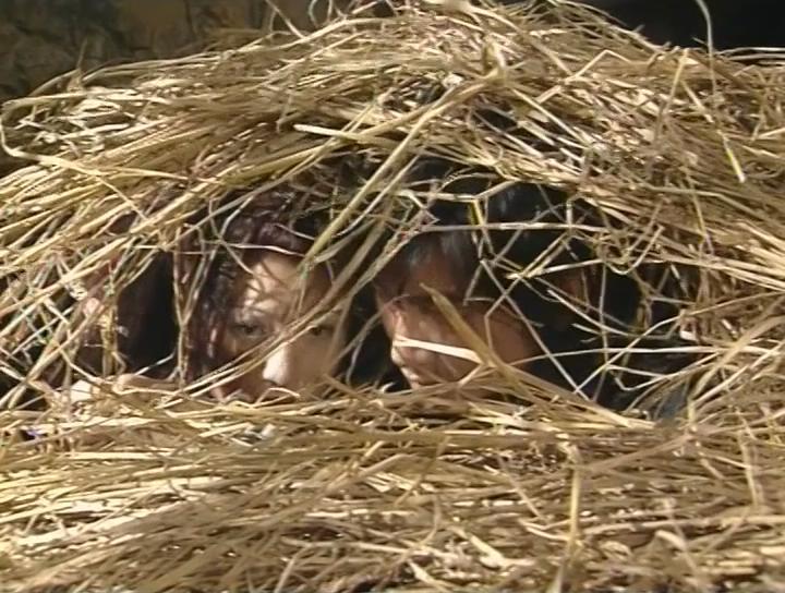 后再來看看09版,張無忌掉到了稻草堆里,卻是殷離的住處。