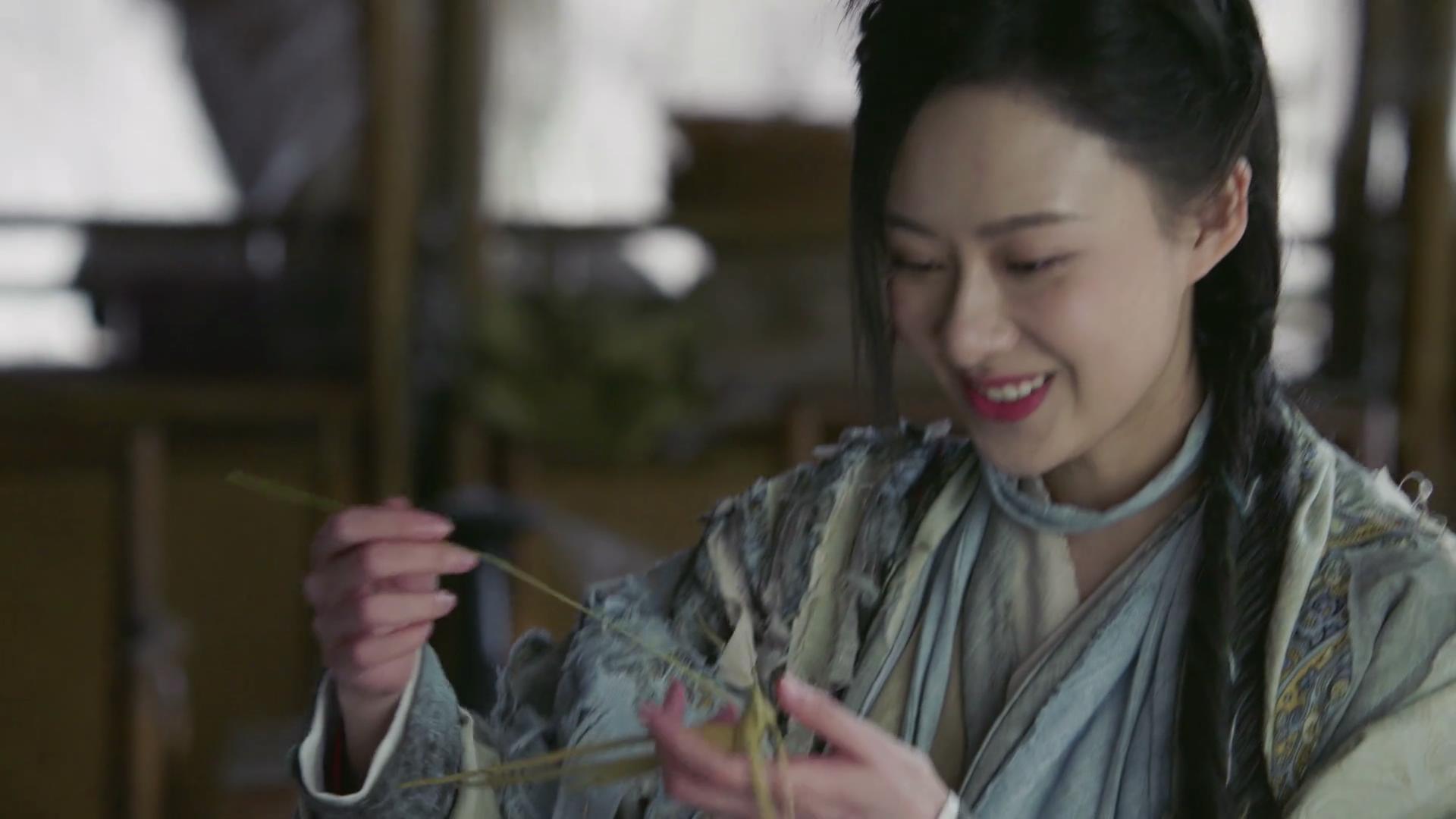 再見面時,無忌用草編了螳螂送給殷離(這版無忌要感謝莫聲谷教了自己這個絕活啊,已經(jīng)用這招哄了兩個姑娘了),殷離滿心歡喜。