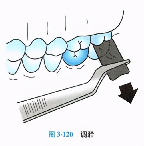 使用牙線檢查修復體與鄰牙的接觸關(guān)系,以及鄰面是否殘留粘固劑或粘接劑,若殘留有粘固劑、粘接劑應仔細去除,否則會損傷牙支持組織。