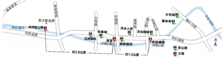 從古墩路與余杭塘路交叉口沿余杭塘河往西到繞城只有一個沒開放的公廁吳大伯說,那個上鎖的公廁在古墩路和余杭塘路交叉口,杭三大橋往西過去1公里左右的位置。