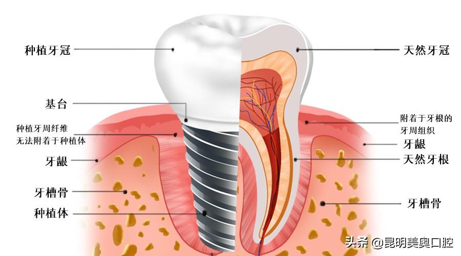 天然牙周圍是牙周膜,可以感受咬合的壓力,而種植牙是直接與骨組織相連,這是兩者大的區(qū)別。