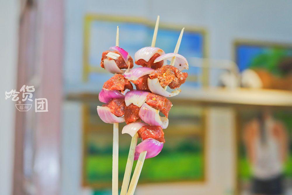 串上的牛肉只能用「塊」來形容,每一塊直徑都有3cm左右,用牙齒撕扯時肉汁會洶涌地躍進你舌尖。對啦,連同洋蔥一起吃更香!
