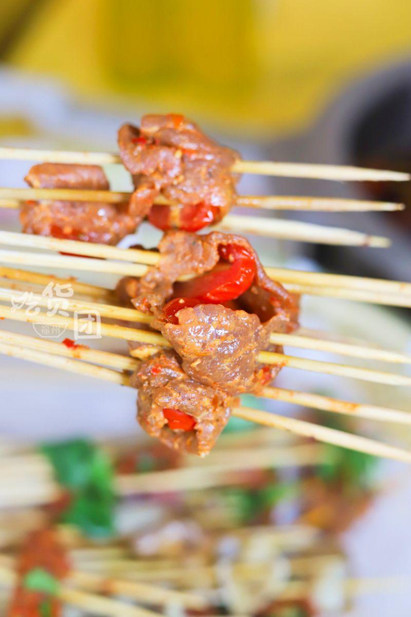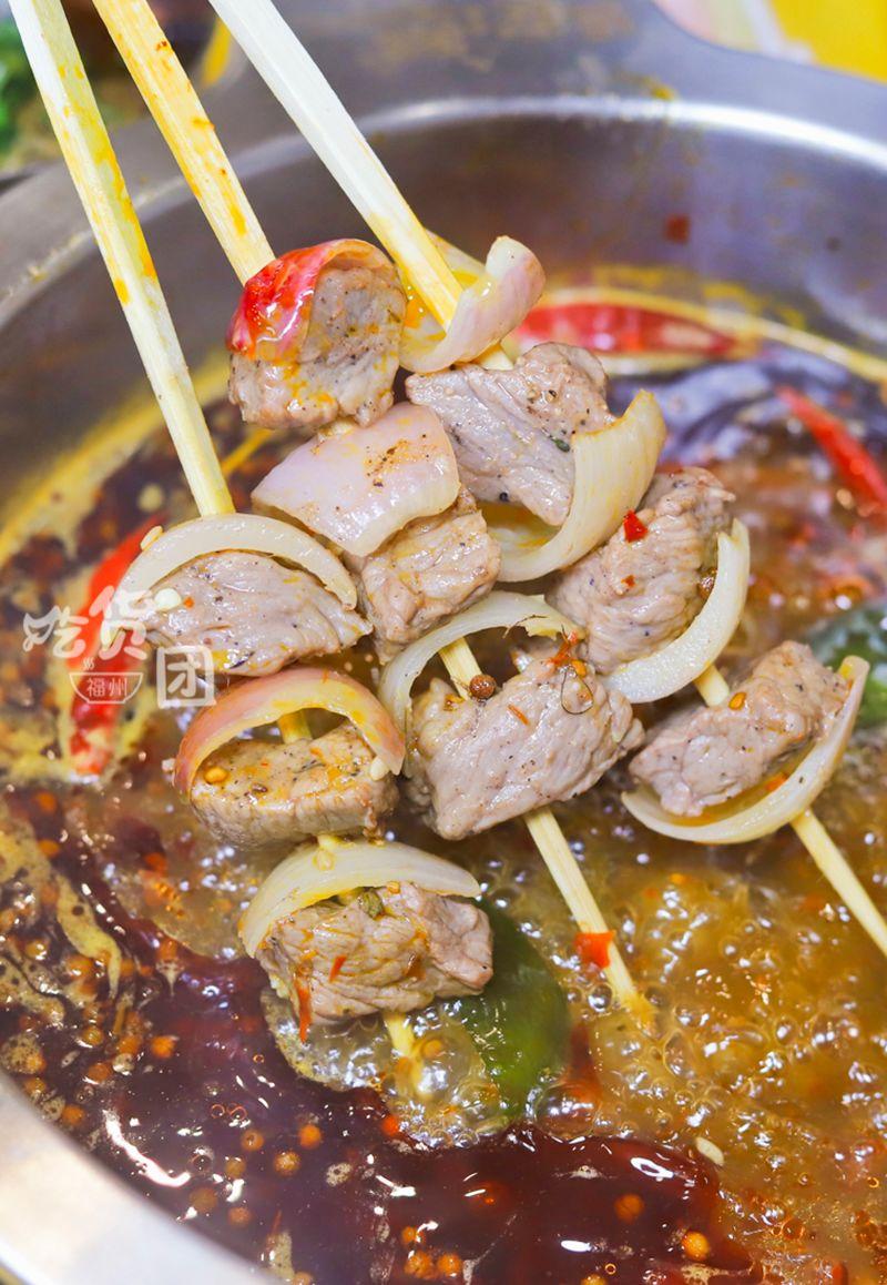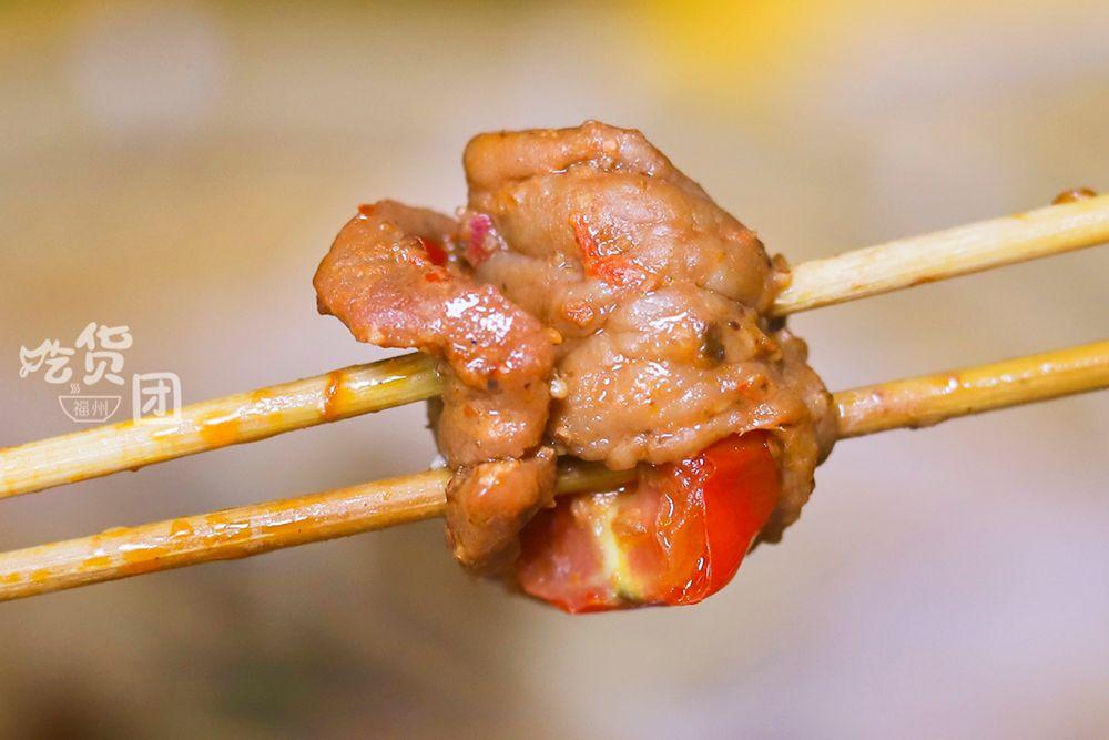 番茄牛肉是我在其他店沒見過的,涮熟時里面的番茄將將要爆汁,咀嚼時容易被豐腴的汁水燙得直哈氣,但卻又愛極了它香辣酸甜的味道,我們拿了足有30串還是不過癮。