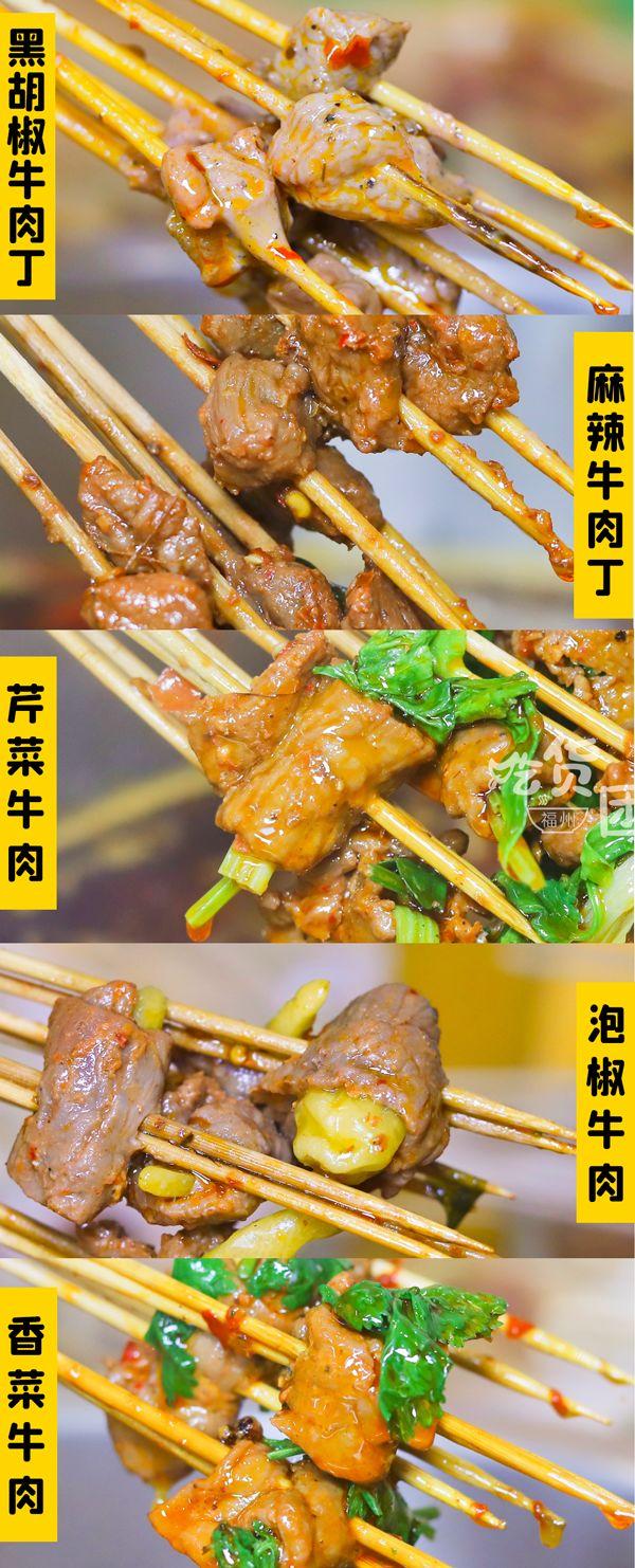 能包容萬物的牛肉一定是串串里的主角啦,各色牛肉串串在冰柜里擺放著,像我這樣的選擇困難癥只能全都拿了!