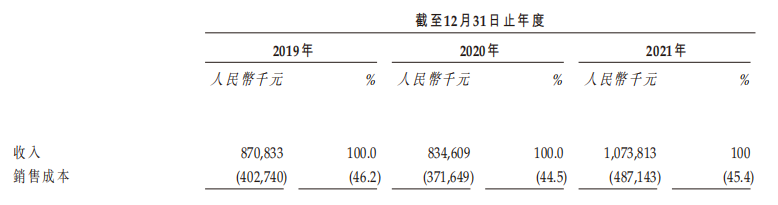 從招股書來看,從2019年~2021年,其銷售成本占總營收的46.2%、44.5%與45.4%,如此之大的銷售成本,不禁使人疑惑錢都花去哪里了?