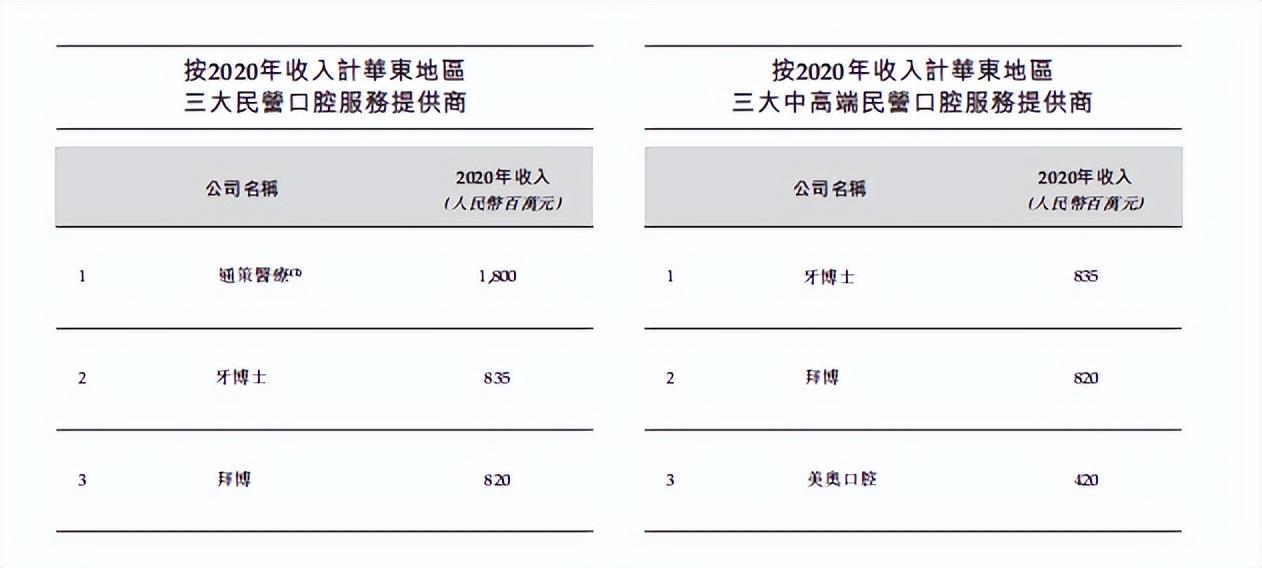 據(jù)招股書顯示,據(jù)2020年營收數(shù)據(jù),牙博士為第五大中國民營口腔集團,前四位分別為拜博、通策醫(yī)療、美維口腔和瑞爾齒科。其中,通策醫(yī)療與瑞爾已經(jīng)成功上市,拜博與美維也經(jīng)歷了多輪融資,可見民營口腔醫(yī)療機構(gòu)們都在向資本市場涌入。