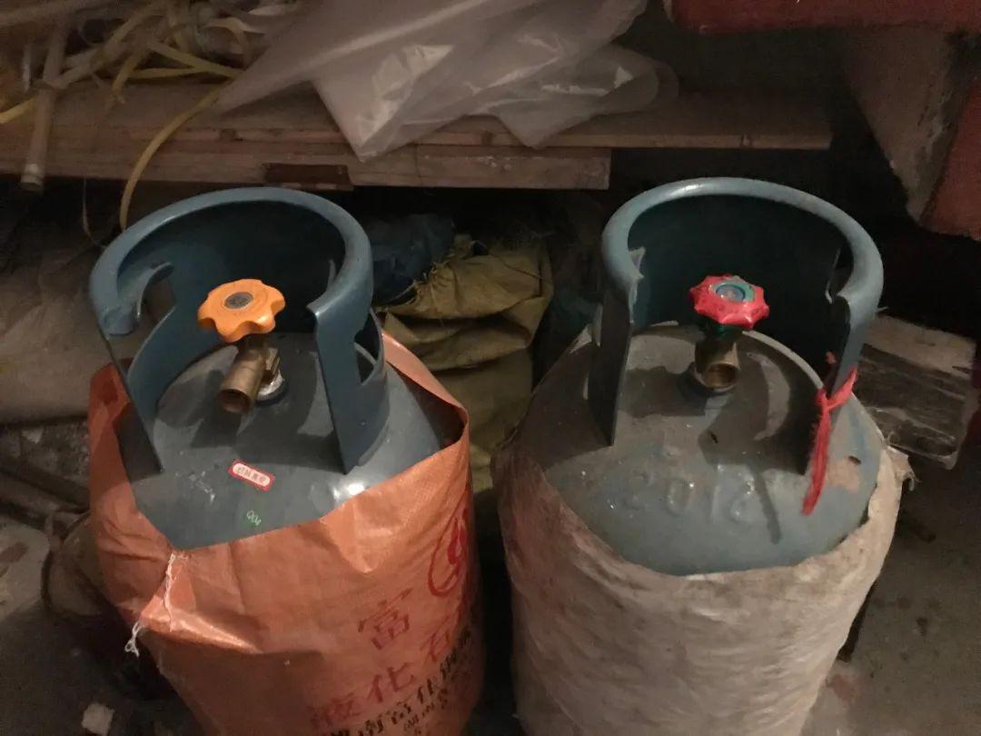 9月13日,李小中購買用來自殺的兩個煤氣罐被棄放在樓道里。新京報記者 聶輝 攝