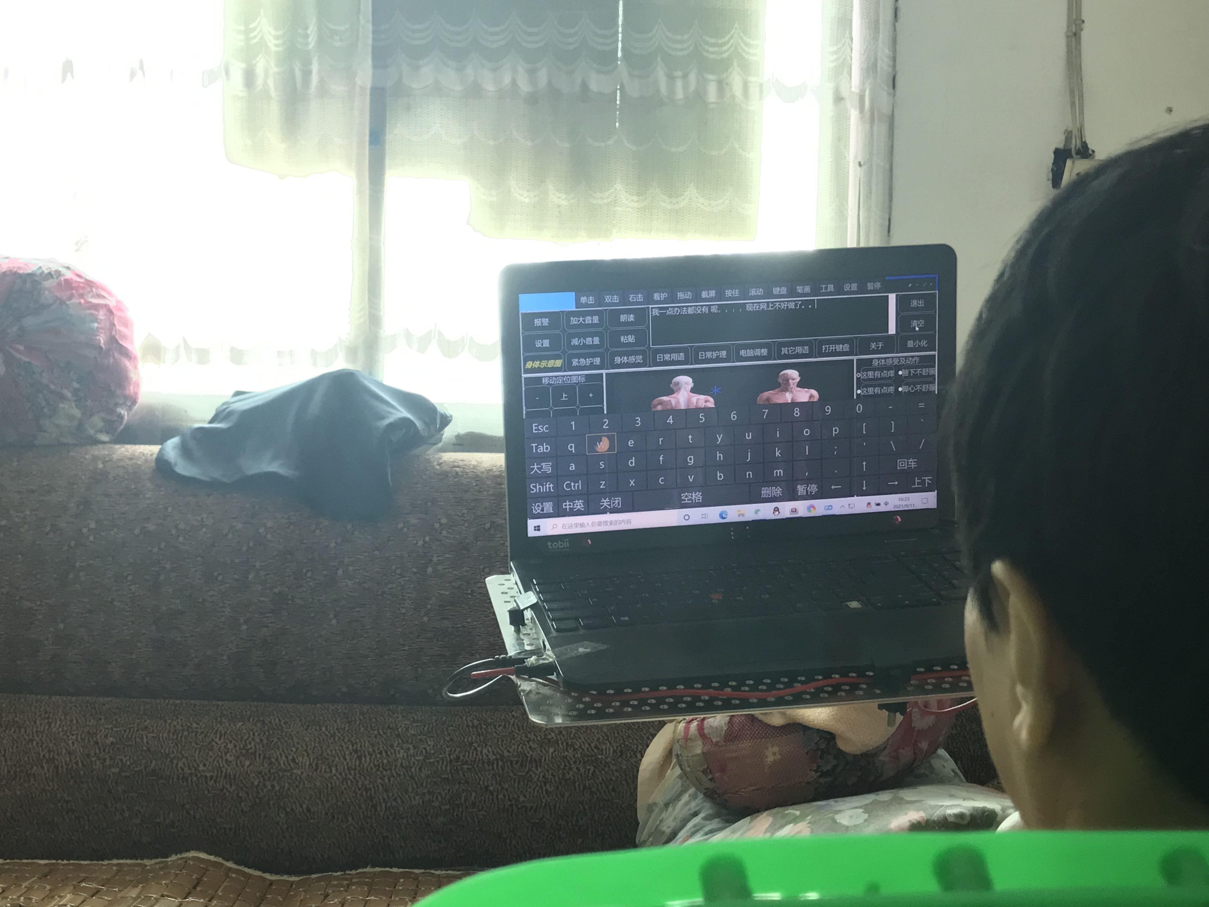 9月12日,李小中的電腦配置有眼控系統(tǒng),用目光控制屏幕打字交流。新京報記者 聶輝 攝