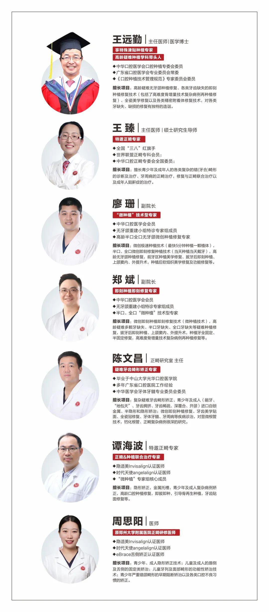 享特殊津貼種植專家王遠(yuǎn)勤博士、廣東省正畸專委會(huì)常委王臻主任領(lǐng)銜,廖珊副院長、鄭斌副院長、陳文昌主任、為技術(shù)核心,匯聚武漢大學(xué)、華西醫(yī)科大學(xué)、暨南大學(xué)、中山大學(xué)等高等院校口腔醫(yī)學(xué)畢業(yè)專家。其團(tuán)隊(duì)獲省級科學(xué)進(jìn)步三等獎(jiǎng)1項(xiàng)、市級科學(xué)進(jìn)步一等獎(jiǎng)2項(xiàng)、二等獎(jiǎng)1項(xiàng),臨床技術(shù)獲省、市相關(guān)部門支持和肯定。