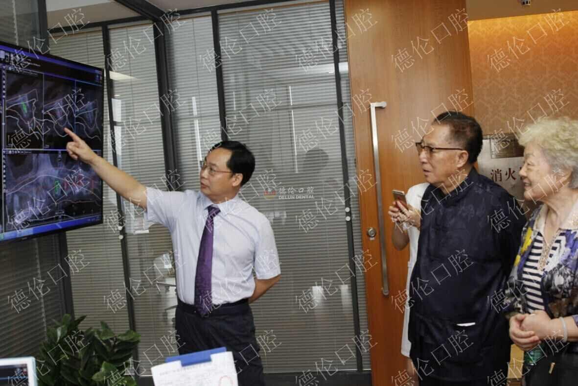 德倫口腔徐世同院長(zhǎng)為兩位老領(lǐng)導(dǎo)講解數(shù)字化種植牙模擬設(shè)計(jì)理念