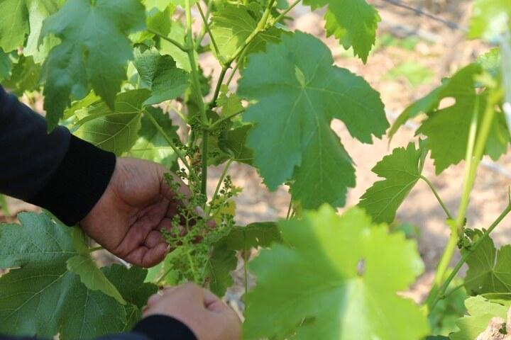 “抹去枝干上的弱芽、還有不健壯的副芽、病芽,力度不要過(guò)重,否則會(huì)影響掛果。定穗的時(shí)候,把一些卷須掐掉,提早掐掉后養(yǎng)分消耗的比較少?!币抡J(rèn)真的講解,對(duì)葡萄進(jìn)行拉穗和修穗,可以減輕葡萄果穗過(guò)于緊密導(dǎo)致上色不均、果粒相互擠壓變形等癥狀。葡萄抹芽不僅能讓葡萄樹(shù)干有足夠的生長(zhǎng)發(fā)育空間,還能芽口營(yíng)養(yǎng),對(duì)后期掛果量及果實(shí)質(zhì)量都有益。