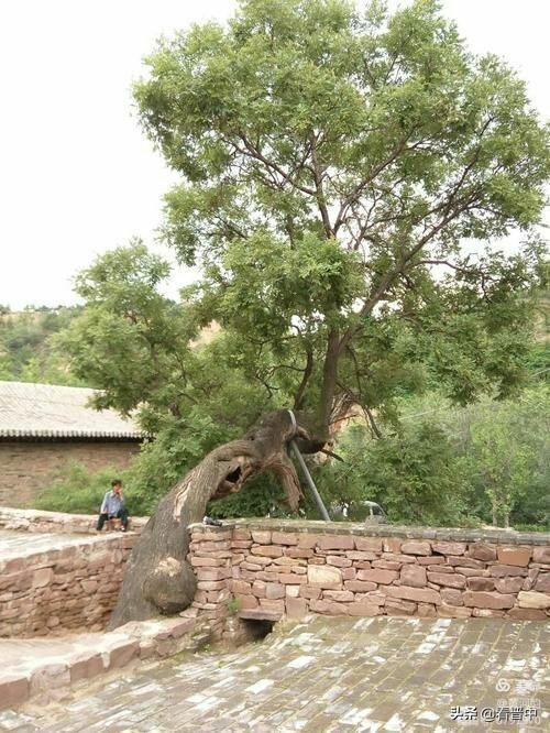 古村之幽還在于綠色的生態(tài)。綠在于樹,特別是眾多的古樹是村里古老的風(fēng)景線,為村子增添了許多古老的幽趣。村里古樹很多,觀音堂前古木參天,戲臺村口古樹扼道,村頭街尾古樹蒼蒼,老態(tài)龍鐘。村前龍門河畔有一株古老的棗樹,它彎腰伏身向著水流來的方向。在它伏身的上方,新生出綠綠的、充滿生機(jī)活力的樹冠,很像一位向河水抗?fàn)幍牟磺先?,也象征著頑強(qiáng)生存的后溝人。曾有人賦詩贊美它:“主干逆流不屈生,新丫枝枝向天擎。不是奇樹有奇骨,一如古村古國民”。村中的古樹有槐、柏、椿、皂角、紫荊,還有桃、梨、杏、棗……