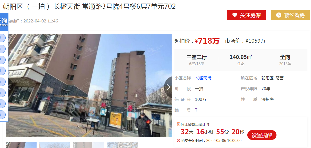 起拍價(jià):718萬 市場(chǎng)價(jià):1059萬