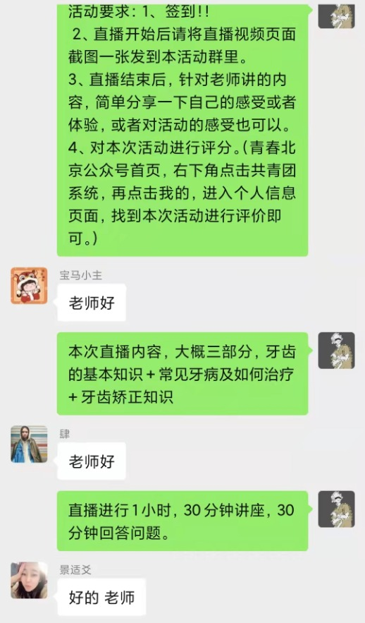 青年們通過(guò)觀看直播了解到專業(yè)的口腔知識(shí),直播臨近結(jié)束時(shí)還和老師進(jìn)行了互動(dòng)。