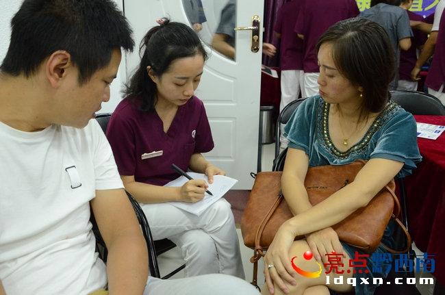 現(xiàn)場向京州口腔醫(yī)院醫(yī)護人員咨詢口腔健康知識。