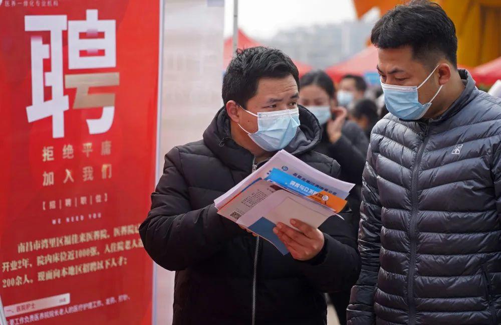 2月25日,江西省南昌市灣里管理局開展“春風(fēng)行動”線下招聘活動。這是求職者在招聘會現(xiàn)場交流。新華社記者 萬象 攝