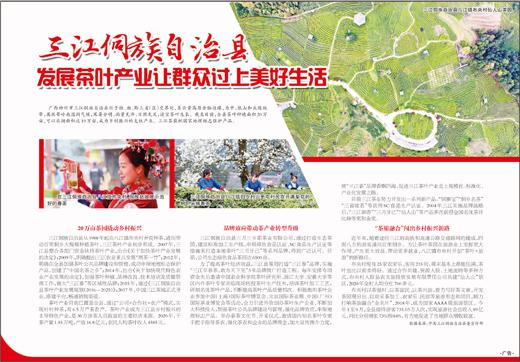 廣西柳州市三江侗族自治縣位于桂、湘、黔三省(區(qū))交界處,系云貴高原余脈邊緣,為中、低山和丘陵地帶,屬熱帶嶺南濕潤(rùn)氣候,寒暑分明、雨量充沛、日照充足,適宜茶葉生長(zhǎng)。截至目前,全縣茶葉種植面積20萬(wàn)畝,可以采摘面積達(dá)19萬(wàn)畝,成為鄉(xiāng)村振興的支柱產(chǎn)業(yè)。三江茶獲批地理標(biāo)志保護(hù)產(chǎn)品。