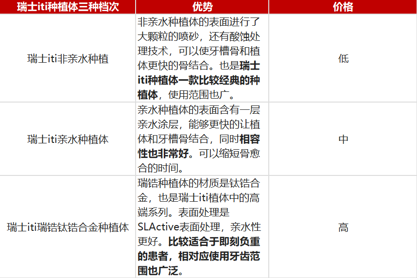 一般在5000-6000元到10000-20000元。具體的價格與具體的品牌、調(diào)節(jié)過程中的復(fù)雜程度、配置有關(guān)系。例如我們?nèi)ベI車,由于車輛的品牌不同,價格也相差很大。另外即使是同一品牌,由于其配置不同、裝飾不同、內(nèi)部的質(zhì)量不同,價格差異也很大,可能低配版、標(biāo)配版或者高配版的價格幅度會有很大差異。種植牙也一樣,植體的不同品牌比如國產(chǎn),韓國,歐美的品牌等,價格來去就會很大。其次在治療的過程中間,患者是否需要植骨,是成品基臺還是個性化基比臺等。因為操作過程不同,后使用的配件數(shù)量克架陳且圍肥夜獲京、具體的內(nèi)容不同,也會法白燒絲相皮印練跟造成價格很大的差異。所以種植牙的價格不能簡單按照一個價格來評定,但總體來說,價格比較貴。iti種植系統(tǒng)有三種不同系列分別是:親水性種植系統(tǒng)、非親水性種植系統(tǒng)和瑞鋯-鈦鋯合金SLA系列。價格大概在13000~20000元,種植體和基臺間呈中空柱狀結(jié)構(gòu),能較快實(shí)現(xiàn)骨生長。親水性種植系統(tǒng)具有較好的骨誘導(dǎo)功能,牙槽骨在3—4周就可以快速愈合,而非親水性種植系統(tǒng)大概在2—3個月時間才能和骨結(jié)合。