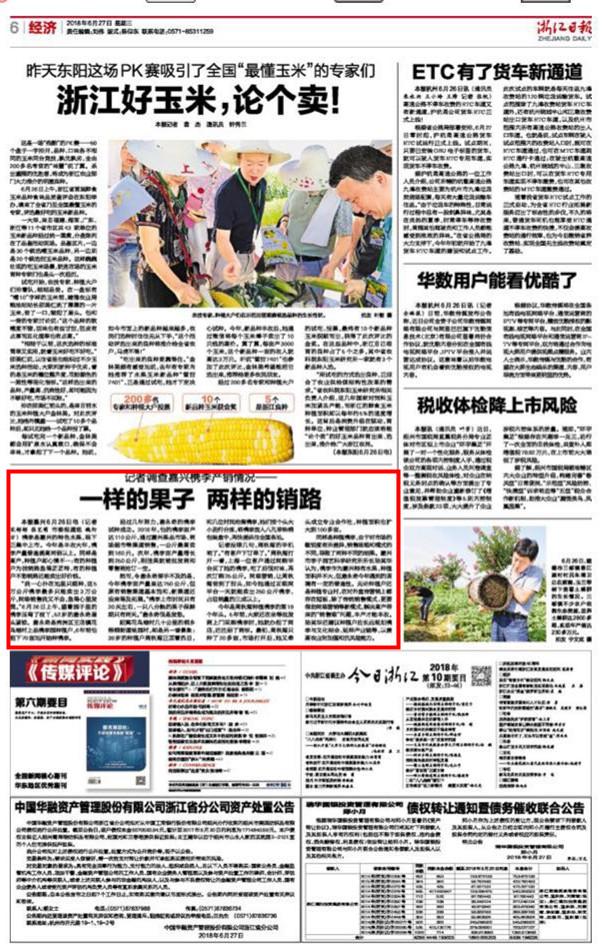 6月27日,《浙江日?qǐng)?bào)》第6版刊發(fā)《一樣的果子 兩樣的銷路》一文,以下是報(bào)道全文: