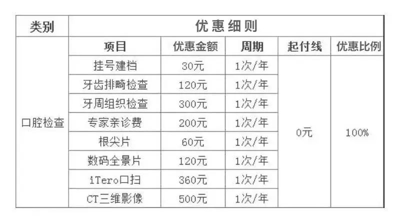 在定點口腔單位可享全套口腔檢查,包含掛號費、專家診療費、方案設(shè)計費、數(shù)字全景片檢查、3D數(shù)字影像CT等費用全額優(yōu)惠,即全部免費。