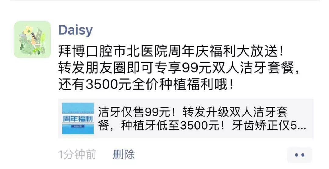 把文章放到圈里即可專享99元雙人潔牙套餐,
