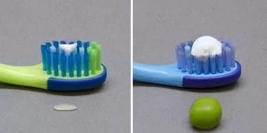 3周歲以下的兒童只用一點大米粒大小的含氟牙膏。3-6周歲兒童用豌豆大小用量的牙膏。