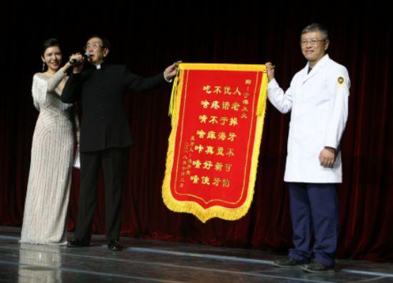 術(shù)后馮老先生為了感謝優(yōu)諾·博士口腔的于海院長,特意送來錦旗,并賦詩一首: