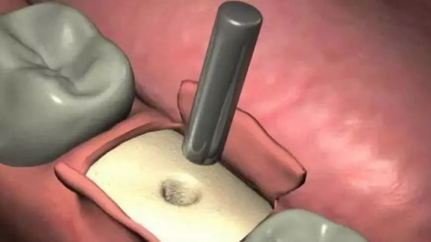 2、正式開始種植牙手術(shù),在牙槽骨上植入種植體,將牙骨床內(nèi)嚴密縫合,大約一個星期后可以拆線。