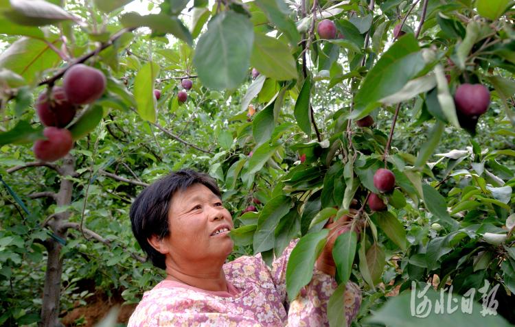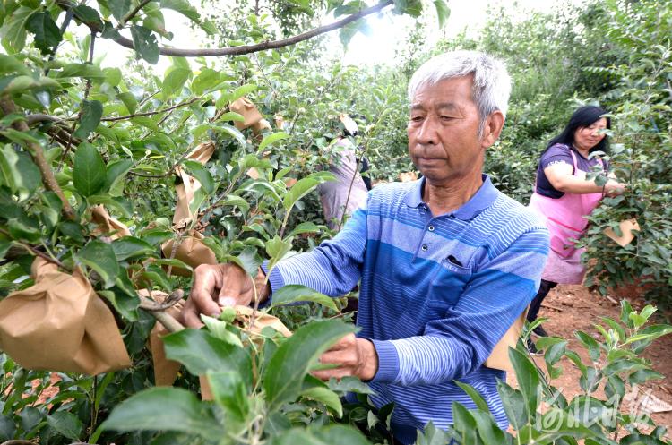 2020年6月1日,河北省曲陽縣孫家莊村西旦溝現(xiàn)代農(nóng)業(yè)園區(qū)果園里,種植戶在給蘋果套袋。河北日報記者杜柏樺攝影報道