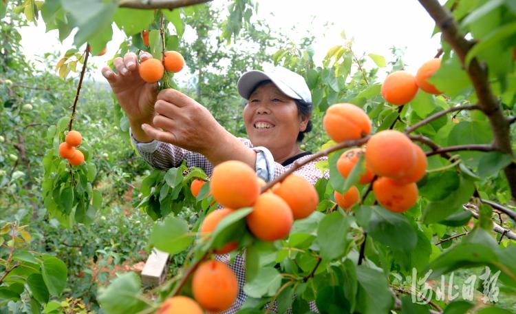 2020年6月1日,河北省曲陽縣孫家莊村西旦溝現(xiàn)代農(nóng)業(yè)園區(qū)果園里,種植戶在采摘鮮杏。 河北日報記者杜柏樺攝影報道