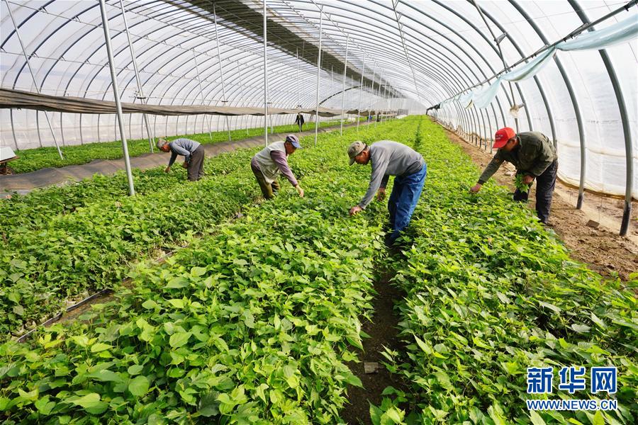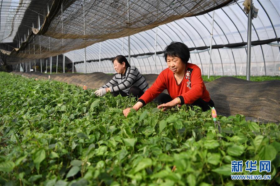4月18日,河北省唐山市古冶區(qū)卑家店鎮(zhèn)王莊子村農(nóng)民在大棚內(nèi)打理構樹苗。