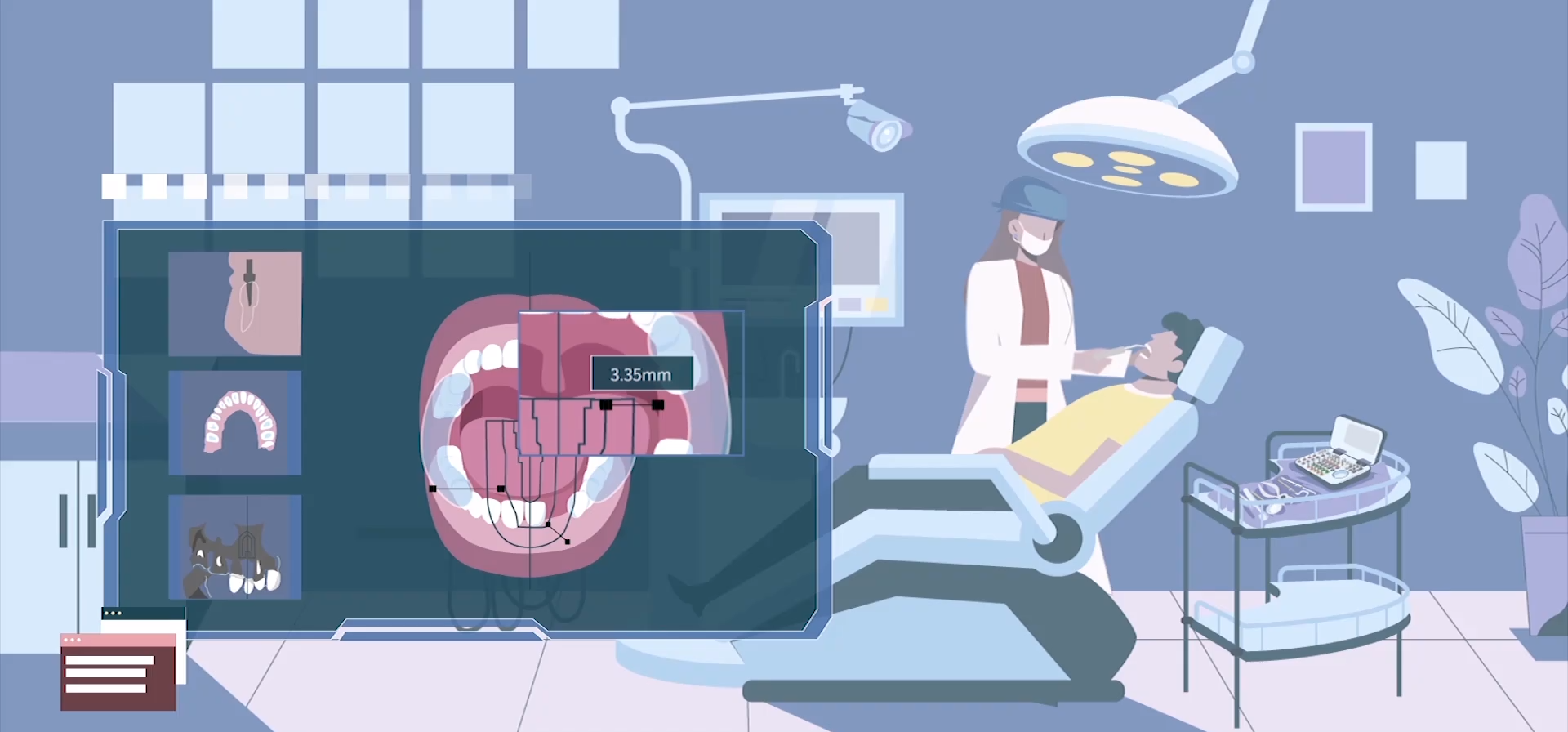 在手術(shù)前,醫(yī)生會(huì)給患者進(jìn)行口腔掃描,將口腔情況轉(zhuǎn)化為數(shù)字模型,再通過模型設(shè)計(jì)種植方案,種植體能夠處于合適的地方。