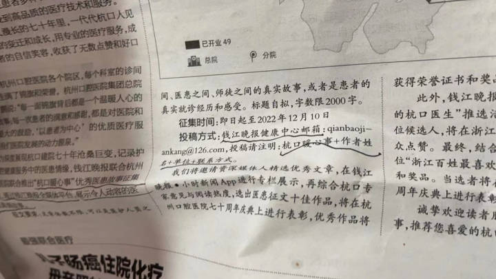 昨天下午,家住西湖區(qū)文新街道的萬女士拿著《錢江晚報(bào)》興沖沖地來到杭州口腔醫(yī)院城西院區(qū),希望醫(yī)護(hù)人員可以幫她將手寫信轉(zhuǎn)成電子版征文,進(jìn)行投稿。