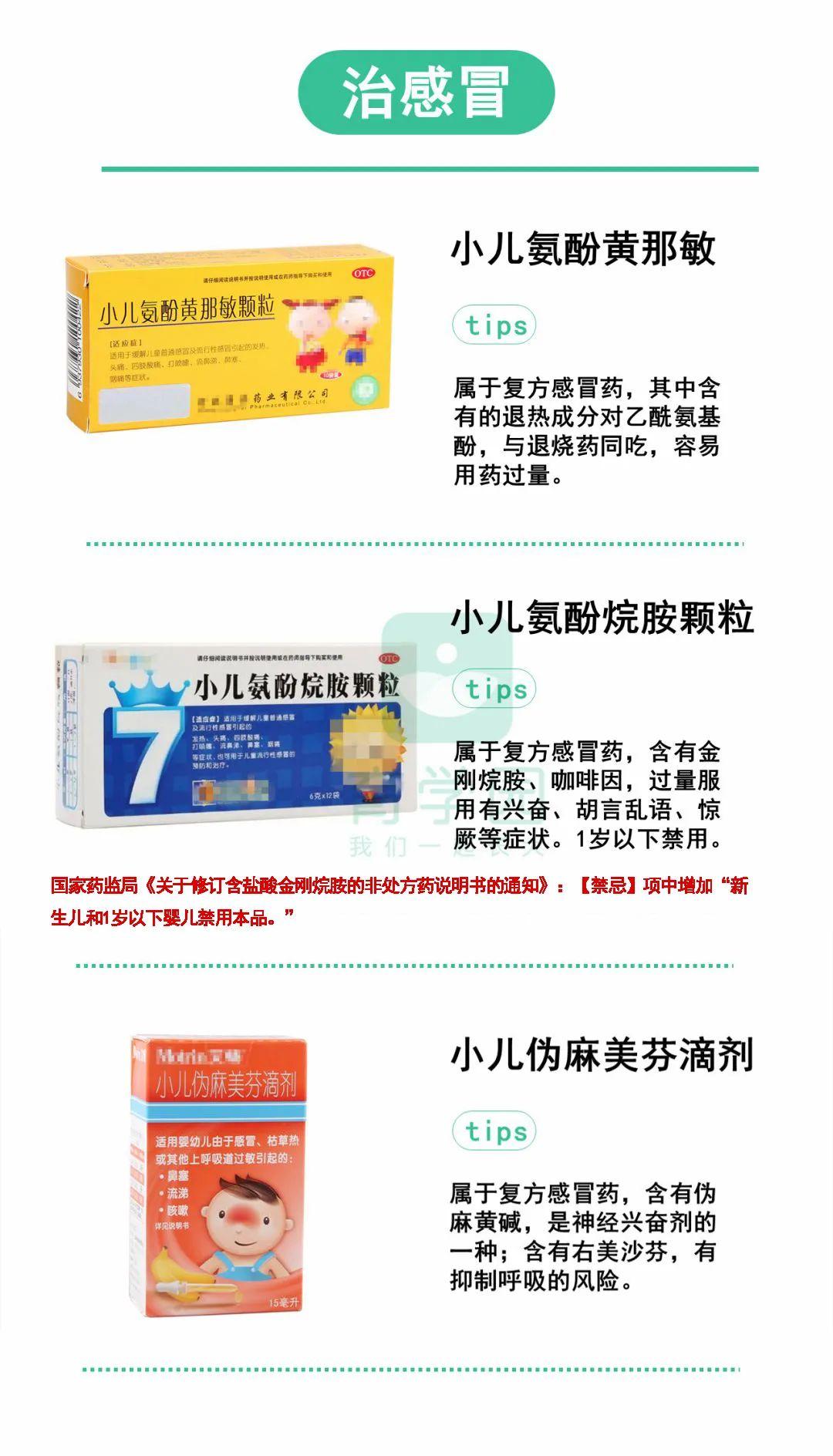 1歲以下兒童禁用含金剛烷胺成分的藥品小兒氨酚烷胺顆粒、小兒復方氨酚烷胺片、氨金黃敏顆粒等藥物都含有金剛烷胺,由于尚不清楚成分金剛烷胺在1歲以下兒童身上的性和有性,故1歲以下兒童禁用這類藥品。