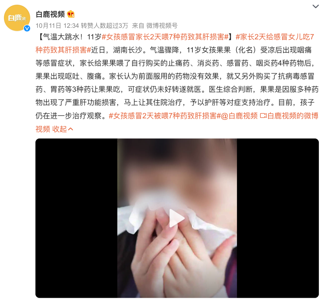這不,前一陣兒就有一個熱搜新聞——家長2天給感冒女兒吃7種藥致其肝損害。