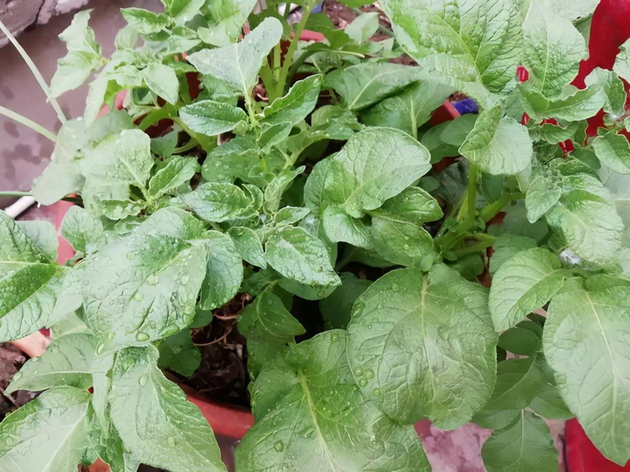 刀切下土豆塊,用清水把土豆塊清洗干凈,找容量大花盆,添上沙河土、腐葉土和田園土,放土壤疏松透氣,把帶芽土豆埋在淺層土壤,澆透水,擺陽臺晾置,七天相處綠葉,三個月收獲“一籮筐”。