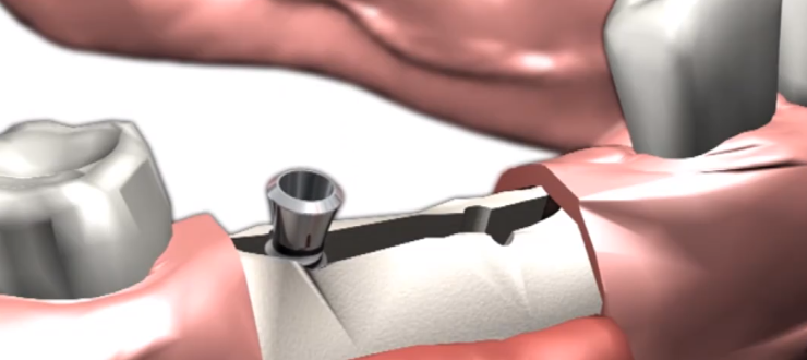 增加牙槽嵴寬度的水平骨增量技術。就是用鉆針或超聲骨刀在牙槽嵴頂做一切口,然后利用骨鑿等器械劈開牙槽嵴,增加牙槽嵴的水平寬度,完成種植體植入。