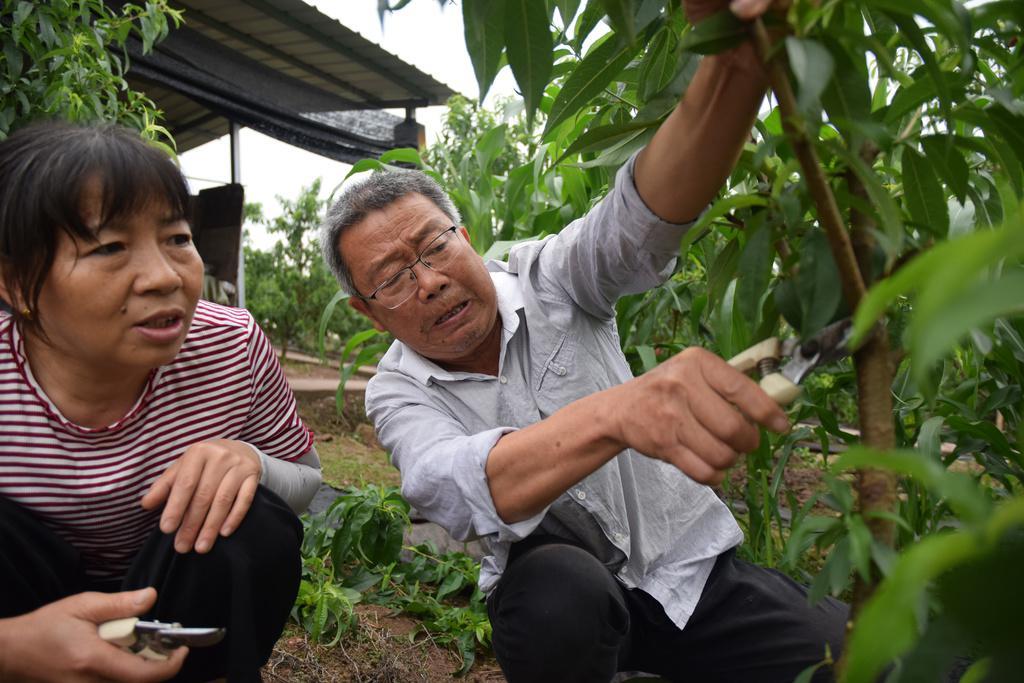 近年來,周令堂還組建了“夏滿蜜桃”科技服務(wù)團隊,建立“科技創(chuàng)新團隊+基層農(nóng)技服務(wù)體系+新型農(nóng)業(yè)經(jīng)營主體”的科技服務(wù)模式,帶領(lǐng)科技人員走村入戶,到田邊地頭一對一向種植戶講解良種良法,幫助種植戶掌握技術(shù)要領(lǐng)。