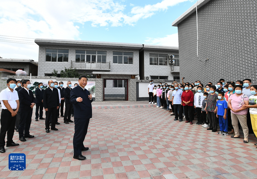 2021年9月13日至14日,在陜西省榆林市考察。圖為13日下午,在米脂縣銀州街道高西溝村臨時下車,察看糧食作物長勢,同正在田間勞作的老鄉(xiāng)拉家常。新華社記者 李學(xué)仁 攝