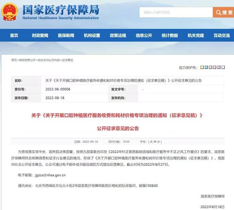 近日,醫(yī)保局發(fā)布《關(guān)于開展口腔種植醫(yī)療服務(wù)收費和耗材價格專項治理的通知(征求意見稿)》(下稱“通知”)?!锻ㄖ饭?部分12條,包括規(guī)范口腔種植醫(yī)療服務(wù)和耗材收費方式、強化口腔種植等醫(yī)療服務(wù)價格調(diào)控、精心組織開展種植牙耗材集中采購、實施口腔種植收費綜合治理,此次征求意見的截止時間為8月27日。