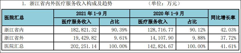 14日公布的季報顯示,在醫(yī)療服務方面,省內業(yè)務對通策醫(yī)療的貢獻占比超過90%。通策醫(yī)療的業(yè)績表現(xiàn),對浙江省內醫(yī)院,尤其是對杭州市口腔醫(yī)院的依賴。