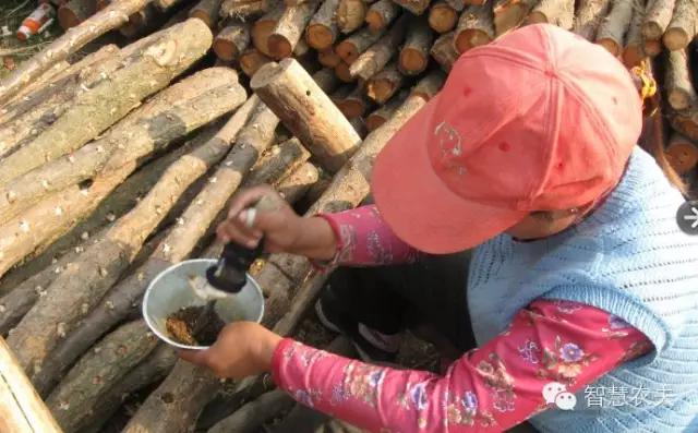 人工接種是栽培黑木耳成敗的關(guān)鍵工序,也是新法栽培大的特點。接種時間,一般以氣溫穩(wěn)定在15℃以上,有利于黑木耳菌絲生長的時候。具體時間因各地氣候條件不同而有差異,南方各省約在3~4月間。適當提早接種,有利早發(fā)菌,早出耳,同時早期接種氣溫低,可減少雜菌,害蟲的感染。接種前,先將段木表面清洗,再放陽光下曬2~3小時后備用。人工接種常用的菌種有木屑菌種、樹枝菌種和楔形木塊菌種。接木屑和樹枝菌種的,要用電鉆或直徑11~12毫米的皮帶沖 打孔,穴探15~2厘米。一般縱向種穴間距離10~12厘米,橫向種穴間距離為4~6厘米。如適當密植,把縱向種穴間距離縮短至6~7厘米,有利于發(fā)菌和提高產(chǎn)量。行與行的穴交 錯成品字形或梅花形排列。木屑菌種要塞滿穴,外加比接種穴直徑大2毫米的樹皮蓋,蓋平、蓋緊,以防菌種干燥。接樹枝菌種的,種木要與耳木平貼。打穴、接種、蓋蓋等要連續(xù)作業(yè),以保持接種穴、菌種和樹皮蓋原有的濕度,才有利于菌種的成活。采用楔形木塊菌種的,要用接種斧或木工鑿,在段木上砍鑿成45°角2厘米深的接種口,然后用小鐵錘將楔形木塊菌種打入接種口,錘緊、錘平。