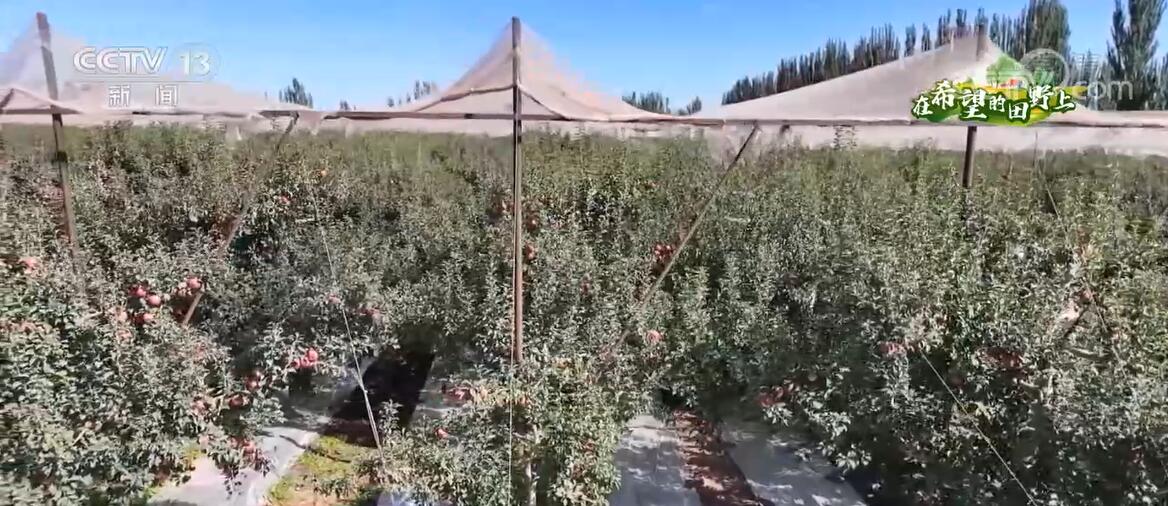 總臺(tái)記者 蘇蒙:我現(xiàn)在就置身于新疆溫宿縣柯柯牙的百萬(wàn)畝果園里,大家通過(guò)鏡頭就可以看到我身后一顆顆紅彤彤的蘋果已經(jīng)迎來(lái)了今年的豐收季。阿克蘇是我國(guó)重要的優(yōu)質(zhì)蘋果產(chǎn)區(qū),我給大家看一下,剛剛摘下的這樣一顆紅彤彤的蘋果,它的含糖量高,剛才測(cè)了一下,含糖量達(dá)到20%以上。
