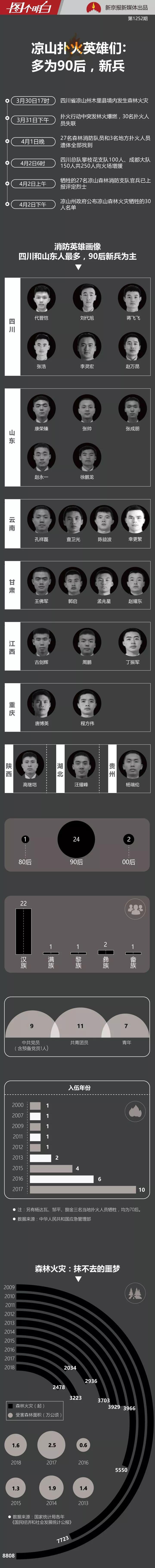 撲火犧牲英雄,來(lái)自五湖四海。除了9人來(lái)自事發(fā)地四川省,還有5人來(lái)自山東省,4人來(lái)自云南省,4人來(lái)自甘肅省……