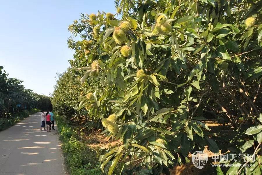 游人在參觀果實(shí)滿枝的板栗林(攝影:梁麗莉)