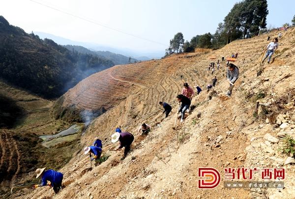 當(dāng)代廣西網(wǎng)訊(通訊員 吳練勛)3月12日植樹節(jié),廣西柳州市三江侗族自治縣林溪鎮(zhèn)的全體干部職工來到該鎮(zhèn)弄團(tuán)村科馬界“牙己茶”示范基地與村民一起栽種新茶苗。